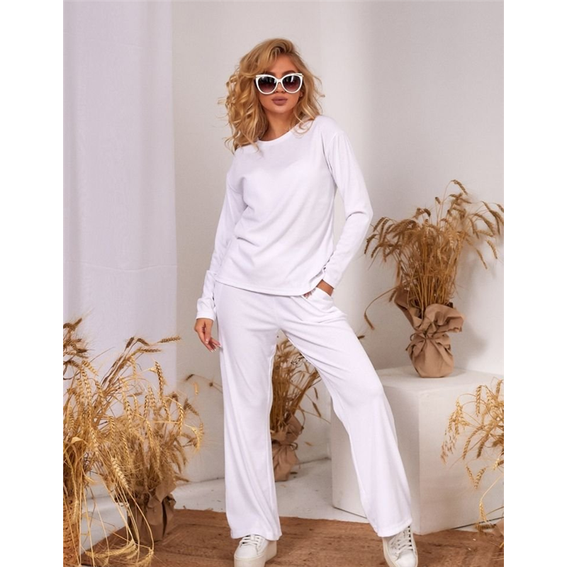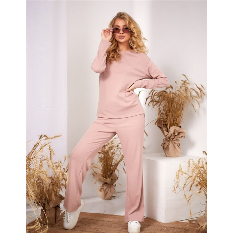 Размер: 42, 44, 46, 48 Костюм:двойка штаны+ кофта Ткань: рубчик Расцветки:белый,беж, черный, шоколад, лаванда,пудра,мята Замеры: Штаны-талия/бёдра, длина 42-32/49/103 44-34/51/104 46-36/53/105 48-38/55/106 Кофта-грудь/талия/длина спереди/длина по спинке/длина рукава 42-46/46/61/69/52 44-48/48/62/69/53 46-50/50/63/70/54 48-52/52/64/71/55 модель:4046