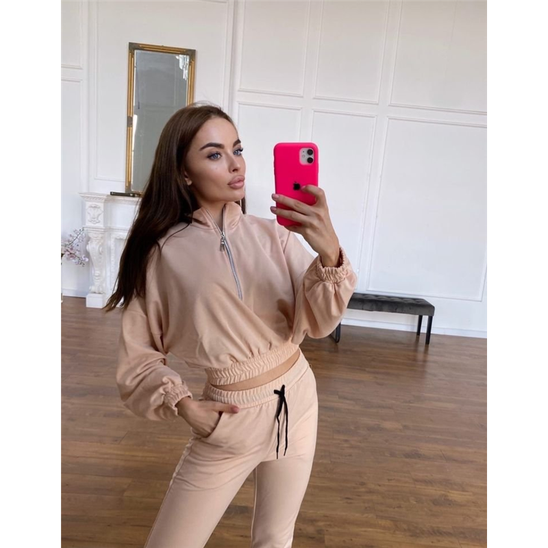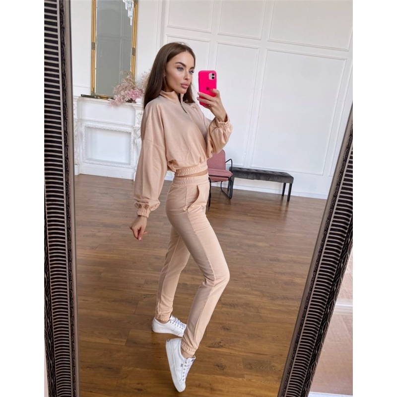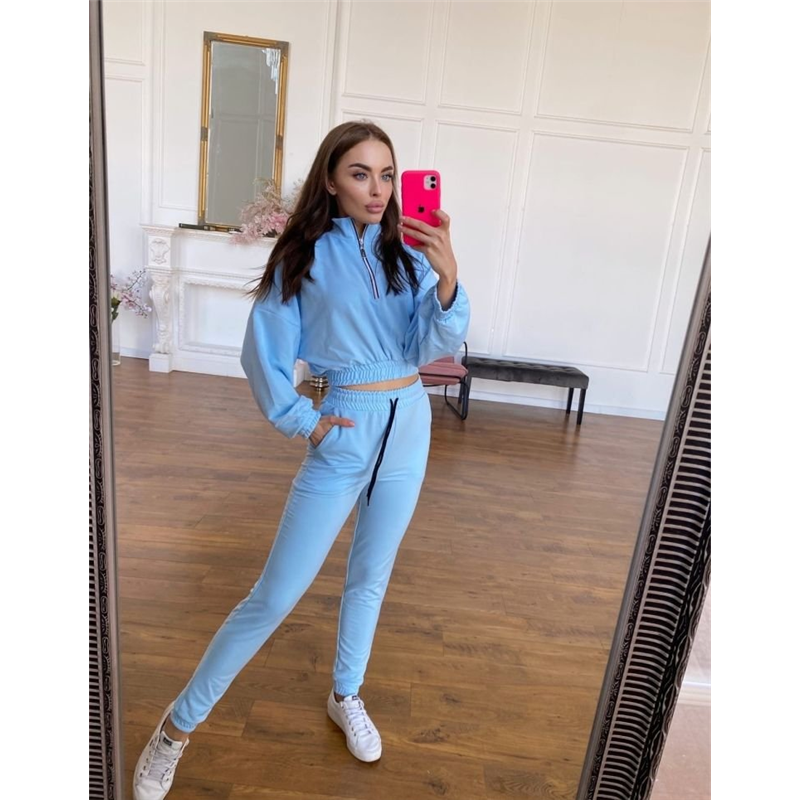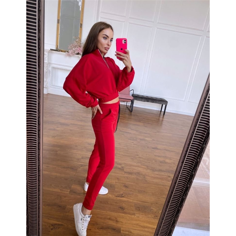 Размер: S-M, M-L Описание: Ткань: двухнить Цвета:чёрный, красный, беж, голубой, лиловый Параметры на s-m: длина изделия-49 Длина рукава-73 Длина брюк Внешний-106 Внутренний-76 Ог-142 От-88 Об-96 Костюм двойка (кофта и штаны). Кофта свободного кроя, рукав реглан, до середины кофты молния, манжеты и низ кофты на резинке. Штаны с высокой посадкой, пояс и манжеты так же на резинке, штаны декорированы шнурком Код товара: 098