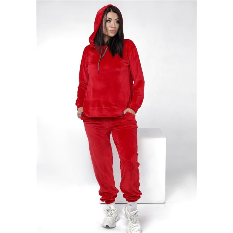 Размер: 42-46 Костюм двойка Ткань дорогой велюр приятный к телу, тёплый без начёса Цвета красный, лаванда, чёрный, мокко Замеры и описание Костюм свободный и стильныйбольшой капюшон на шнурке, нашивка пришита 42-46 длина кофты 61 см, длина рукава от капюшона 69 см, грудь 116, низ кофты 112 см Штаны ширина 110 см, длина 106, высокая посадка штанов с карманами, ткань стрейчевая На моделе одет размер 48-52 367