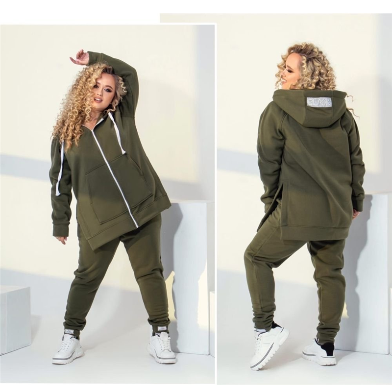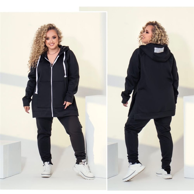 Размер: 50-52, 54-56 Ткань:трех нитка на флисе Цвета:чёрный,лиловый,оливка. На модели размер 46-48. Замеры по изделию: 50-52: худи ог до134см. Дл 70см. Дл рукава от плечевого шва 58см. Дл надплечья 19см. Штаны:об до126см. Пояс до 100см. Дл 107см. 54-56: худи ог до142см. Дл 72см. Дл рукава от плечевого шва 59см. Дл надплечья 20см. Штаны:об до134см. Пояс до...