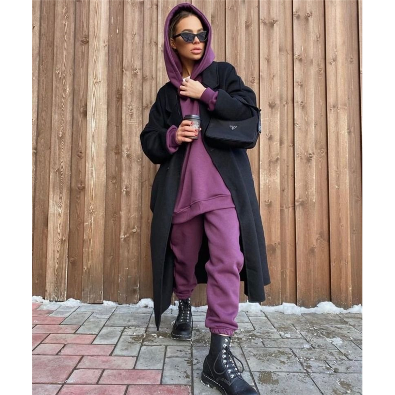 Размер: 50-52, 54-56 Ткань:трех нитка на флисе Цвета:чёрный,лиловый,оливка. На модели размер 46-48. Замеры по изделию: 50-52: худи ог до134см. Дл 70см. Дл рукава от плечевого шва 58см. Дл надплечья 19см. Штаны:об до126см. Пояс до 100см. Дл 107см. 54-56: худи ог до142см. Дл 72см. Дл рукава от плечевого шва 59см. Дл надплечья 20см. Штаны:об до134см. Пояс до...
