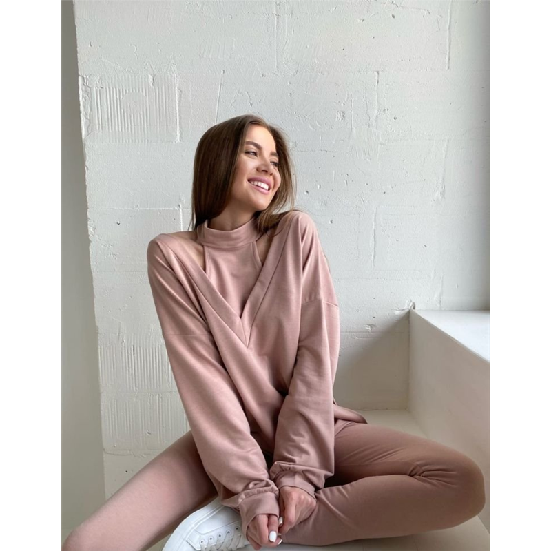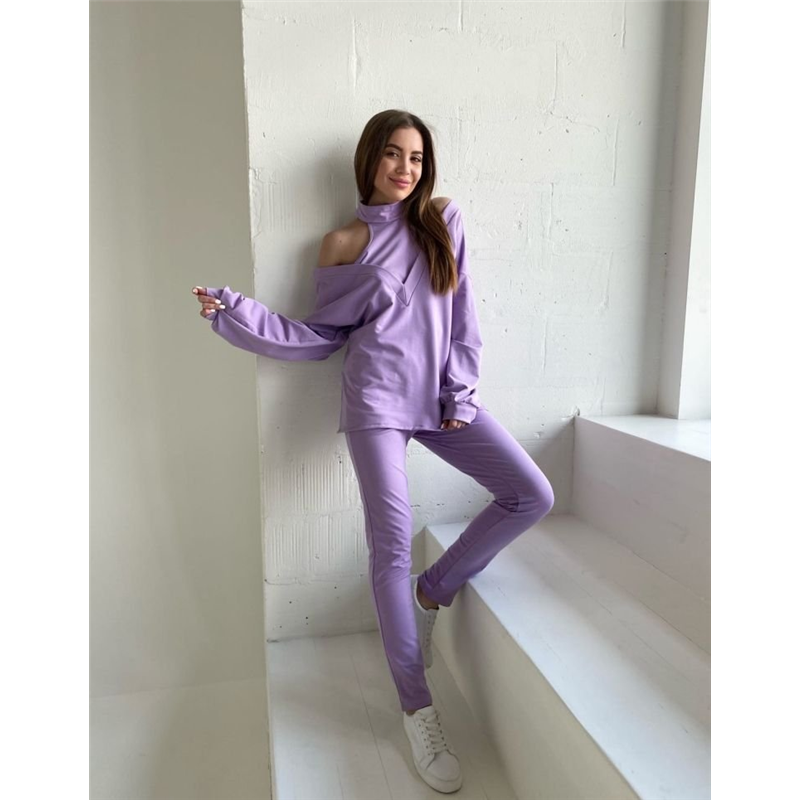 Размер: 42-44, 46-48 Костюм 3-ка Ткань: двухнитка Цвета: беж, сирень Костюм состоит из трёх вещей- зауженные брюки на резинке, топ и кофта свободного кроя мод.833
