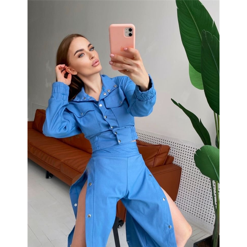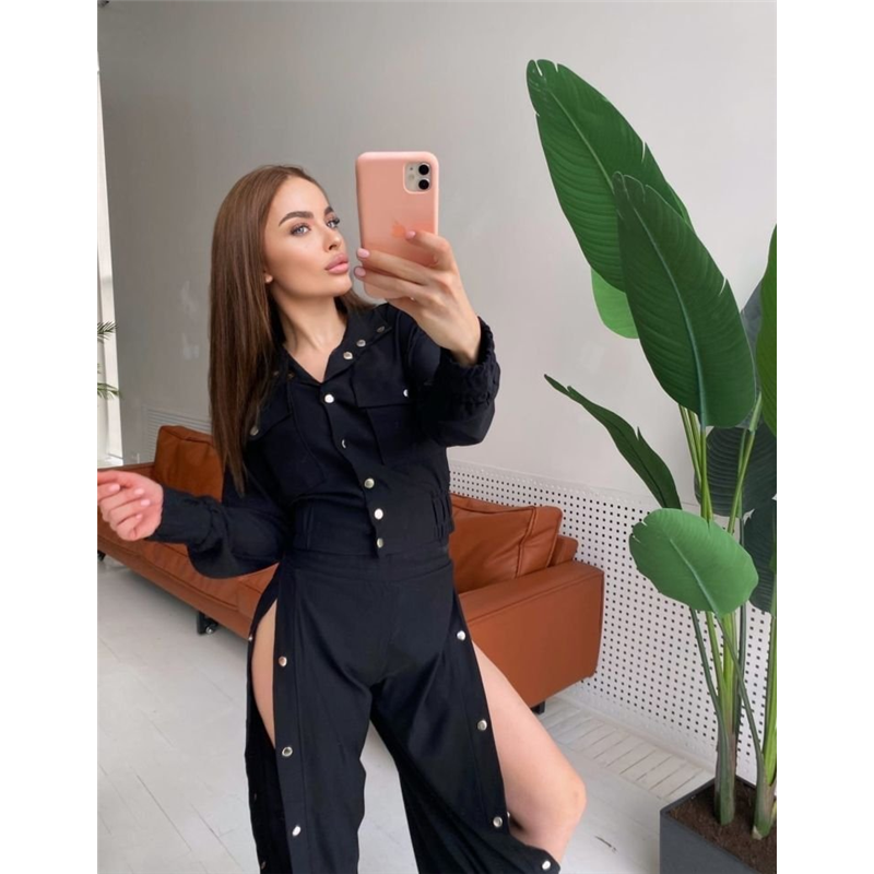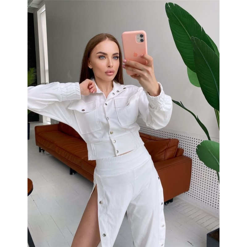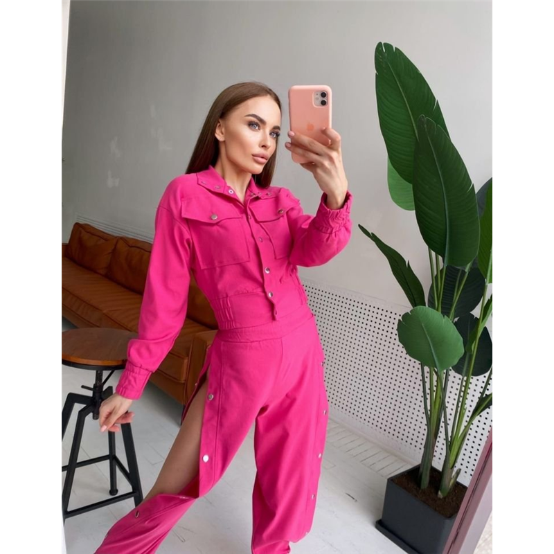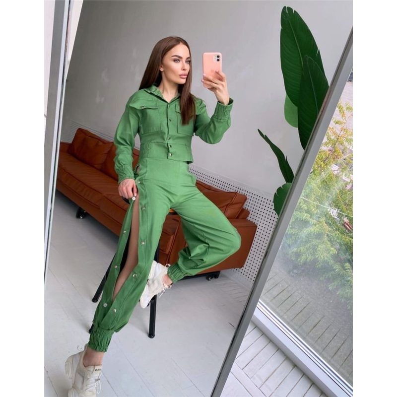 Размер: S-M, M-L Ткань: джинс стрейч Цвета: зелёный, чёрный, белый, джинс, малина Параметры на m-l: длина кофты 48 Длина рукава 52 Ог 96 От 75 Длина штанов 106 Внутренний 77 От 62 Об 86 Костюм двойка - кофта+штаны. Костюм декорирован накладными карманами, кофта на кнопках. Манжеты на кофте,а так же пояс-на резинке,манжеты брюк и пояс так же на резинке. Брюки по внешнему шву на кнопках. Ткань хорошо тянется Код товара: 374