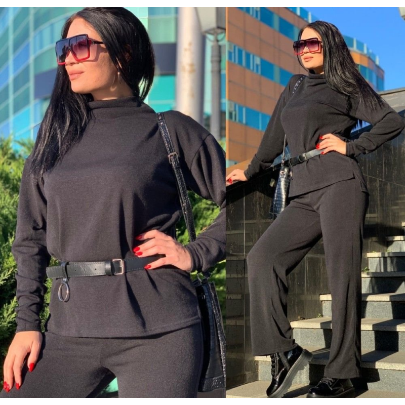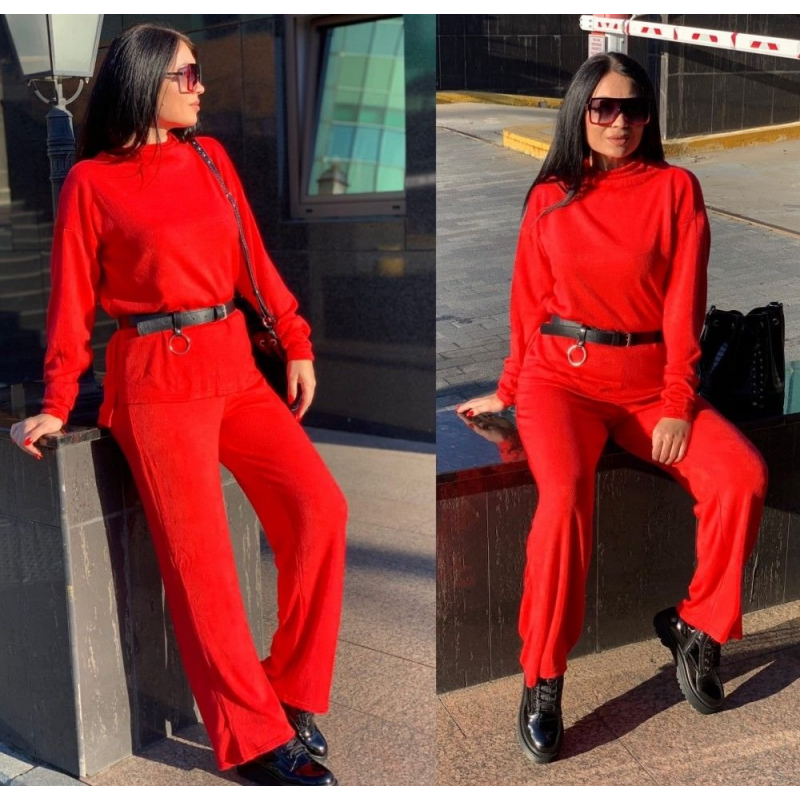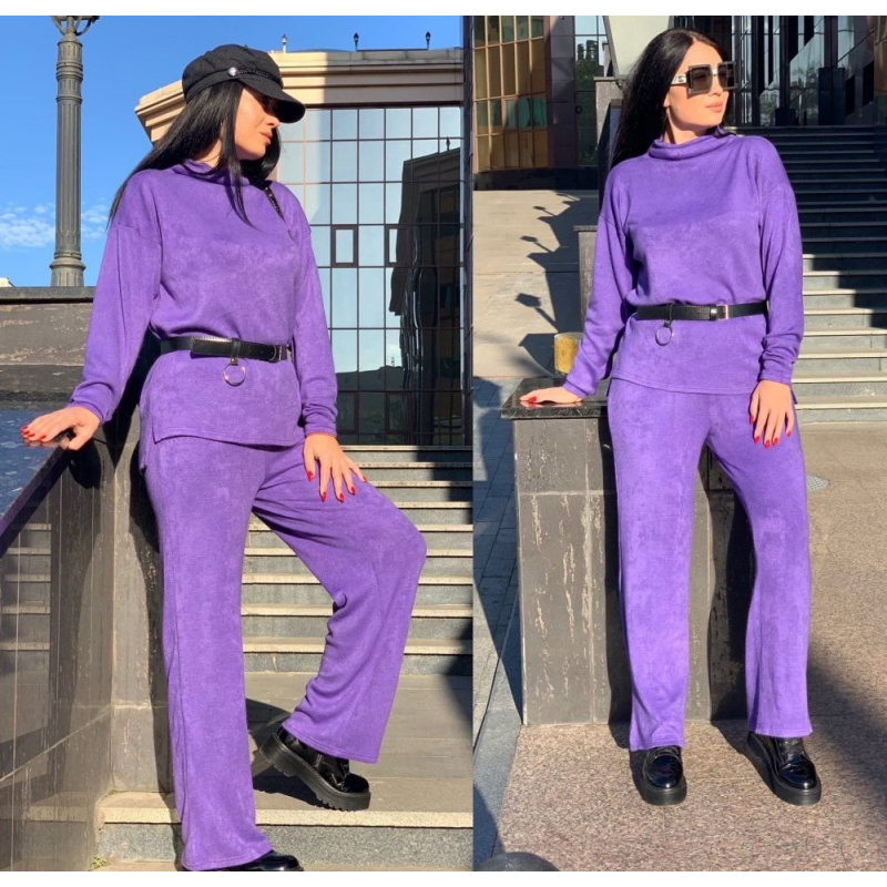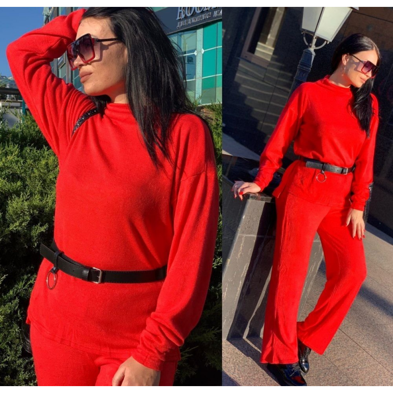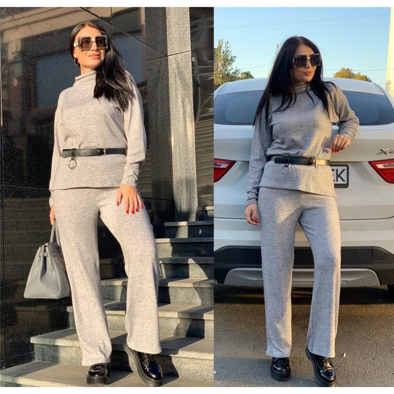 Размер: 42-46 Костюм двойка Ткань ангора тёплая Цвет красный, сирень, чёрный, мокко, серый Кофта оверсайс свободного кроя, штаны высокая посадка трубы(свободные), на резинке, горло стойка Ремень в комплекте Фото реал Замеры 42-46 кофта грудь 100см(+10 см тянется), длина перед 65 см, спинка 70 см, длина рукава 76 см от горловины. Штаны длина 104 см, ширина бёдра 110 см(+10 см тянется) 377