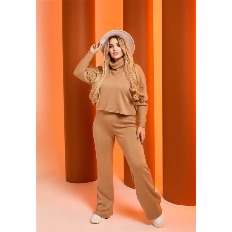 Размер: 42-44, 46-48 Костюм брючный Материал: двусторонняя вязаная ткань (материал тёплый , непрозрачный, плотный, мягкий, приятный на ощупь, хорошей растяжимости ). Длина топа 45 см в 1 и 2 р, 50 см в 3 и 4 р. Длина брюк по внутренней стороне 80 см. Брюки высокой посадки по фигуре, пояс на резинке 5 см арт 5551.2