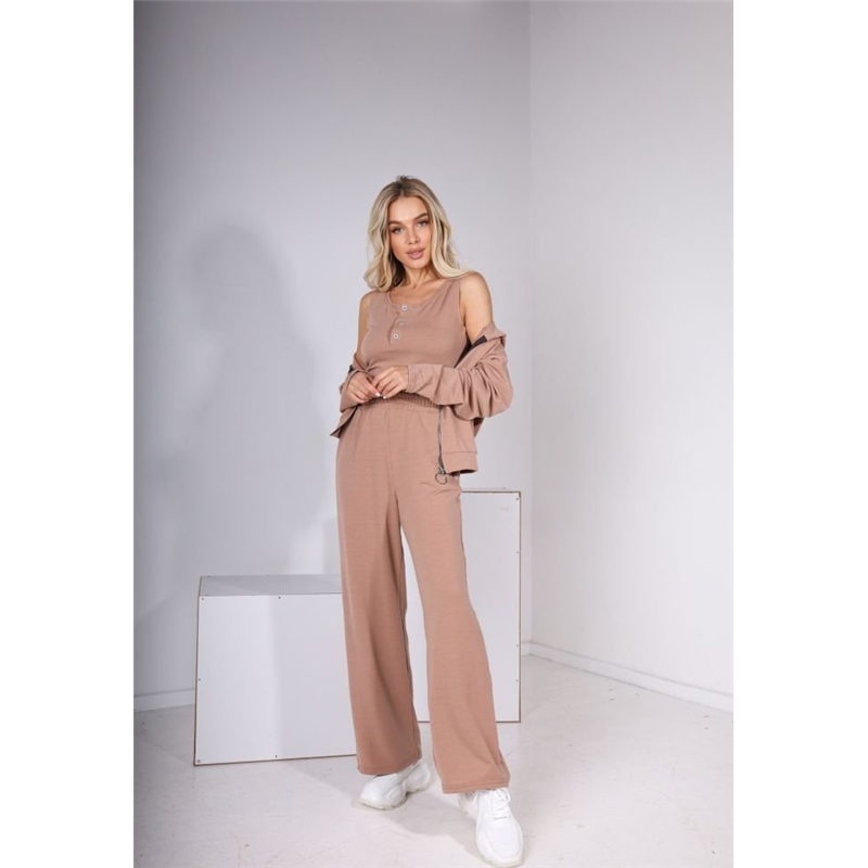 Размер: 44, 46 Костюм тройка Цвет: мокко Ткань: двухнитка Длина брюк: 105-109 см Длина кофты: 44-48 см Брюки клеш от бедра с карманами, топ на пуговицах и кофта с капюшоном на змейке Замеры: Брюки 44 от 67-99 об 100 Бок. Шов 105 внутр. Шов 71 46 от 70-102 об 104 Бок. Шов 106 внутр. Шов 72 48 от 73-105 об 108 Бок. Шов 107 внутр. Шов 73 50 от 76-108 об 112 Бок. Шов 108 внутр. Шов 74 52 от 79-111 об 118 Бок. Шов 109 внутр. Шов 75 Кофта 44 ог 105 высота спинки 44 46 ог 108 высота спинки 45 48 ог 111 высота спинки 46 50 ог 114 высота спинки 47 52 ог 117 высота спинки 48 Майка 44 ог 81 высота спинки 38 46 ог 86 высота спинки 40 48 ог 91 высота спинки 42 50 ог 96 высота спинки 44 52 ог 100 высота спинки 46 артикул 557