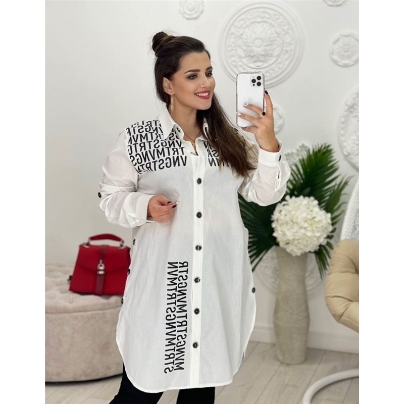 Размер: 42-44, 46-48Ткань- турецкий коттон Цвет- белый Свободная рубашка, рукав на манжете с пуговицей , дополнительно застегивается на патик на пуговку, тем самым регулируется длина рукава. Рубашка полностью застегивается на пуговицы по всей длине, по бокам пуговицы в ряд, сзади на спинке разрез на запах Параметры по внешнему шву изделия: 42-44: ог94, от98, об100, рукав 59см, длина изделия по спинке 96см, 46-48: ог106, от110, об114, рукав 61см, длина спереди 92см. 50-52: ог108, от112, об116, длина рукава 61см, длина изделия по спинке 97см. 54-56: ог118, от122, об130, рукав 62, длина спереди 96см, бицепс 42см. модель 562vl