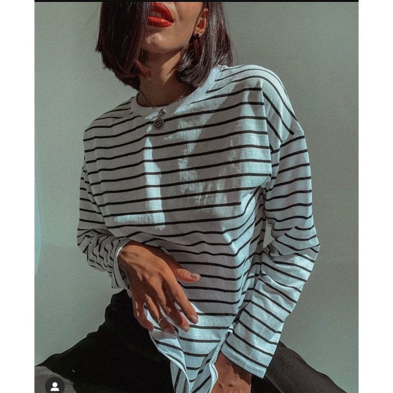 Размер: 42-44, 46-48Ткань- турецкая двухнитка Цвета- синий с белой полосочкой, белый с синей полосочкой Свободный свитерок в трендовую полоску морячку, на горловине белая рибана на двух цветах, длинный , приспущенный рукав, низ лонгслива свободный Параметры моделей: Батал ог108-от86-об108, рост 165, на ней представлен 50-52, Норма ог95-от65- об95, рост 170, на ней представлен 42-44. модель 792vl