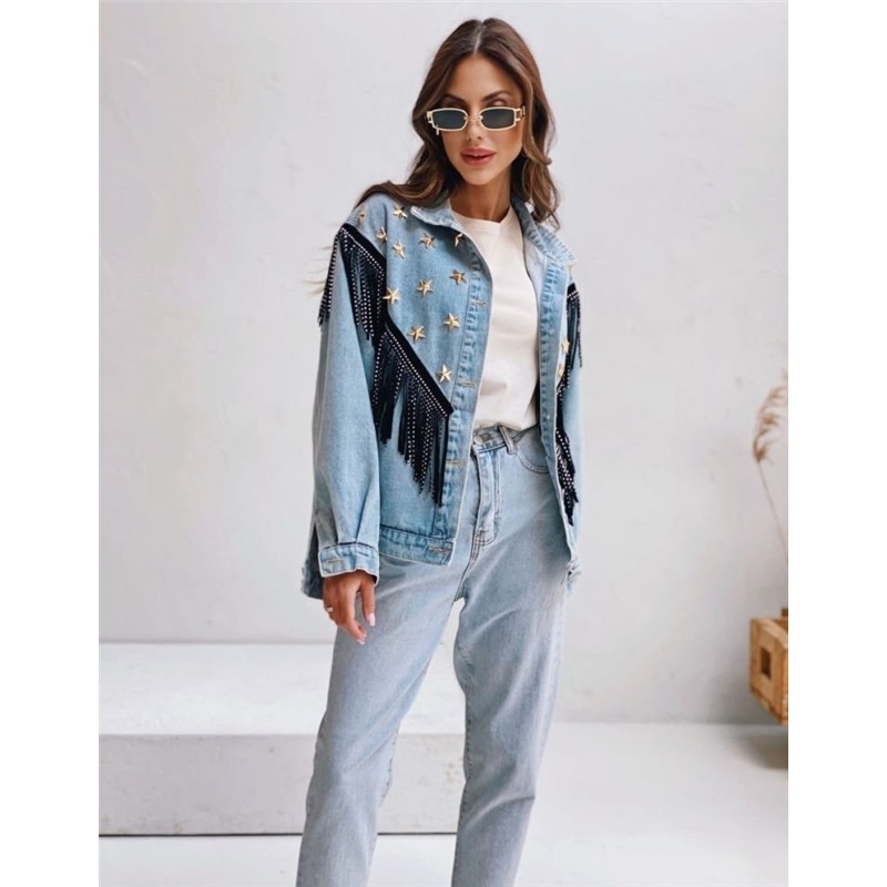 Размер: 42, 44, 48 Ткань: джинс-коттон, не тянется Длина 60 см Декоративные элементы: цепочки, шармы и зажимы Куртка в стиле oversize из голубого денима. Модель дополнена оригинальным украшением из цепочек и металлических заклепок. Куртка свободного покроя, выбирайте свой обычный размер. Параметры модели на фото : рост 174 см, размер s (42). Уход за вещами бережная стирка при 30 градусах, химическая чистка разрешена Фабричный китай модель 2087